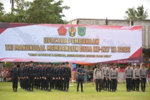Kabupaten Bima, MatawartaNet – Upacara pembukaan TNI Manunggal Membangun Desa (TMMD) ke-127 tingkat Kabupaten Bima Tahun Anggaran 2026 resmi digelar pada Selasa (10/2/2026). Kegiatan yang mengusung tema “TMMD Satukan Langkah, Membangun Negeri dari Desa” ini dipusatkan di Lapangan Desa Sondo, Kecamatan Monta.